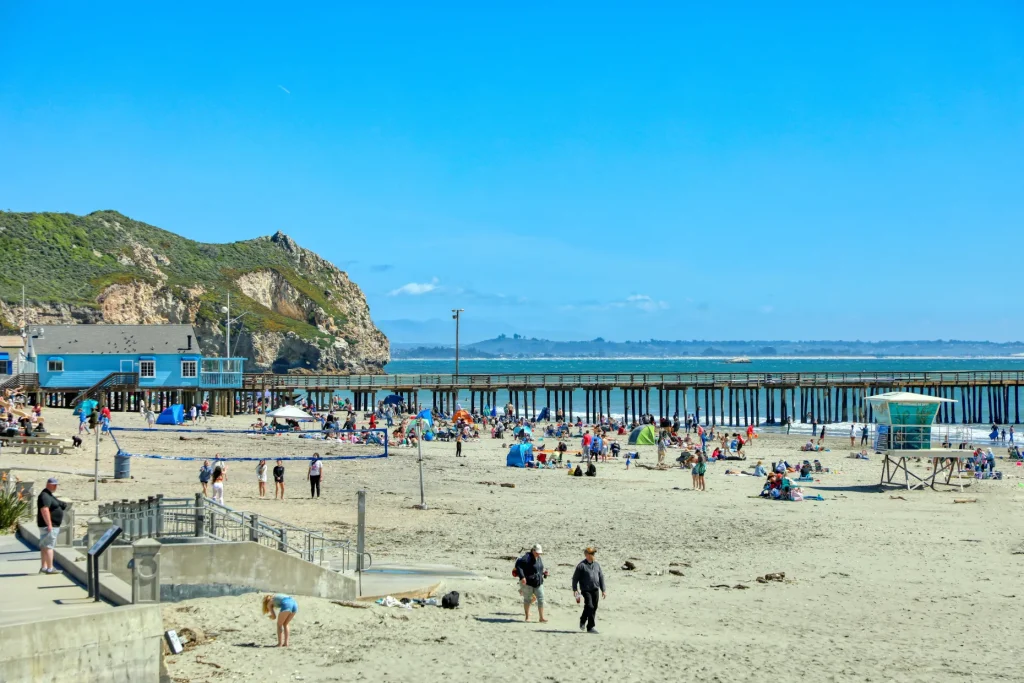 At the heart of Avila Beach lies its main beach, a pristine stretch of white sand flanked by calm bay waters and a lively promenade. Paddleboarders skim across the waves, beachgoers bask in the sun, and families savor ice cream as they stroll along the shore. It’s a slice of quintessential California beach life.