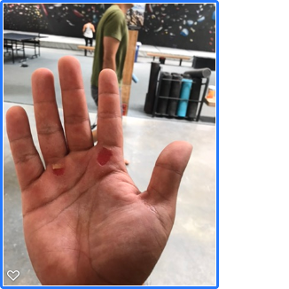 *1. What happens when you don’t use chalk! While climbing, I slipped a little bit and felt a burning sensation. When I came down, I saw my skin ripped – and as the pros call it – “hangers.” After holding back tears, the gym gave me nail clippers to cut the hangers off. So make sure you start your climb with some Lebron style chalking up!